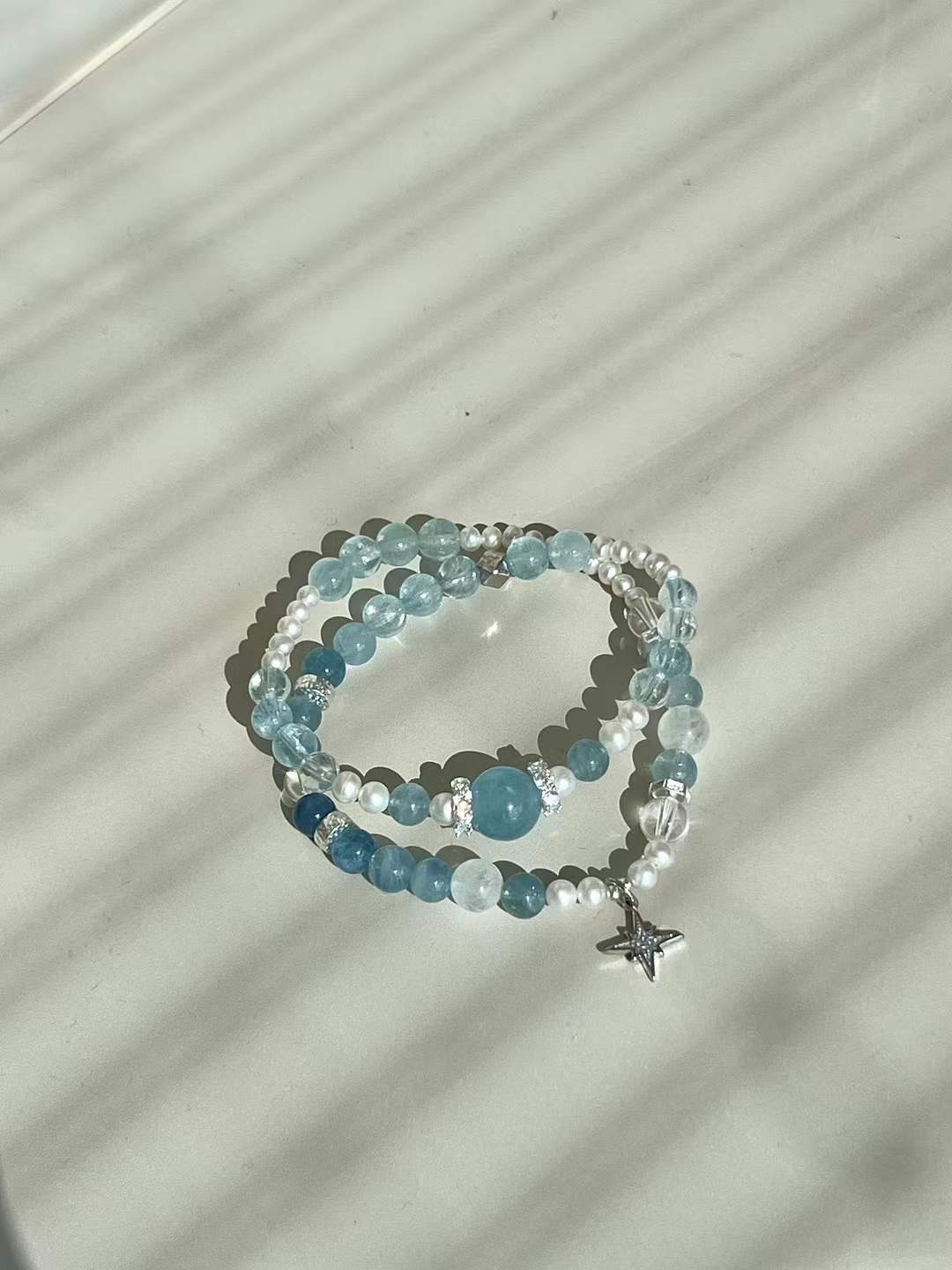Premium Materials: Hand-selected natural Aquamarine beads and high-luster pearls.