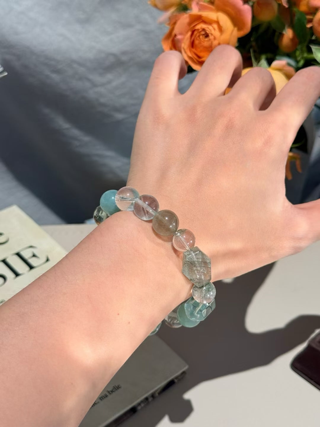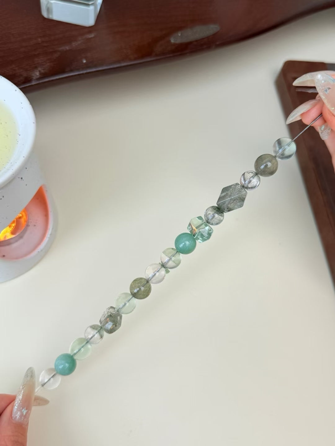 Wood Element Abundance Bracelet — Green Phantom & Hare's Fur Quartz for Growth & Wealth